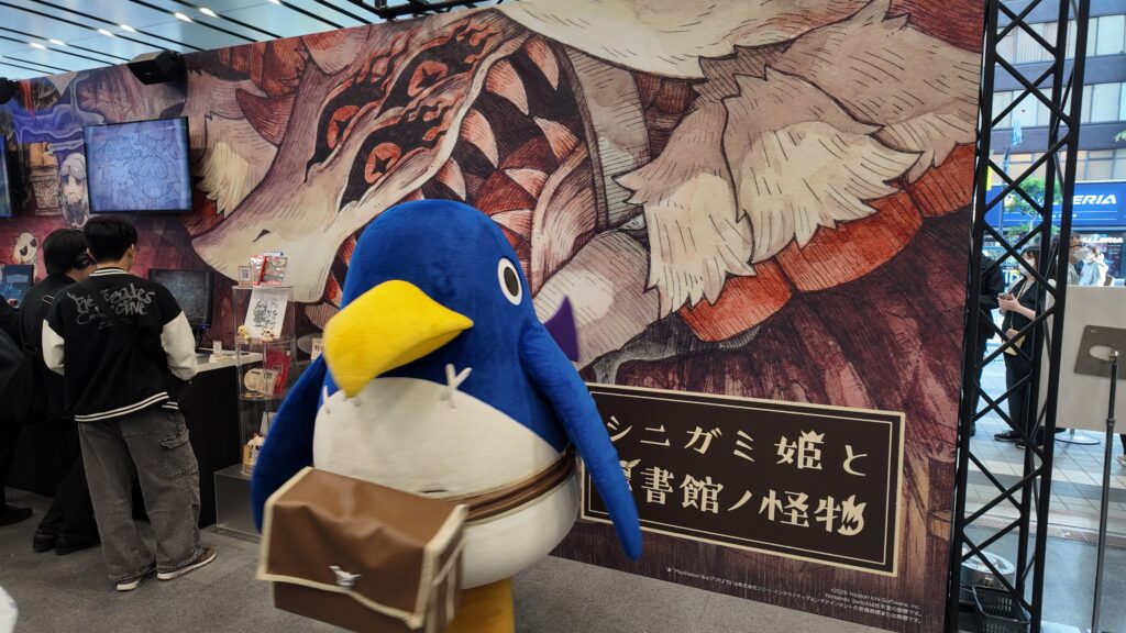 シニガミ姫と異書館ノ怪物の展示と日本一ソフトウェアのマスコットキャラ「プリニー」