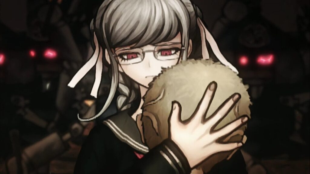 舞台は崖際、モノクマに操られた辺古山は周囲から襲い掛かってくる案山子兵士をバッタバッタと切り伏せていく。まさに鬼神といった様子で、無印の大神の没おしおきを彷彿とさせる。